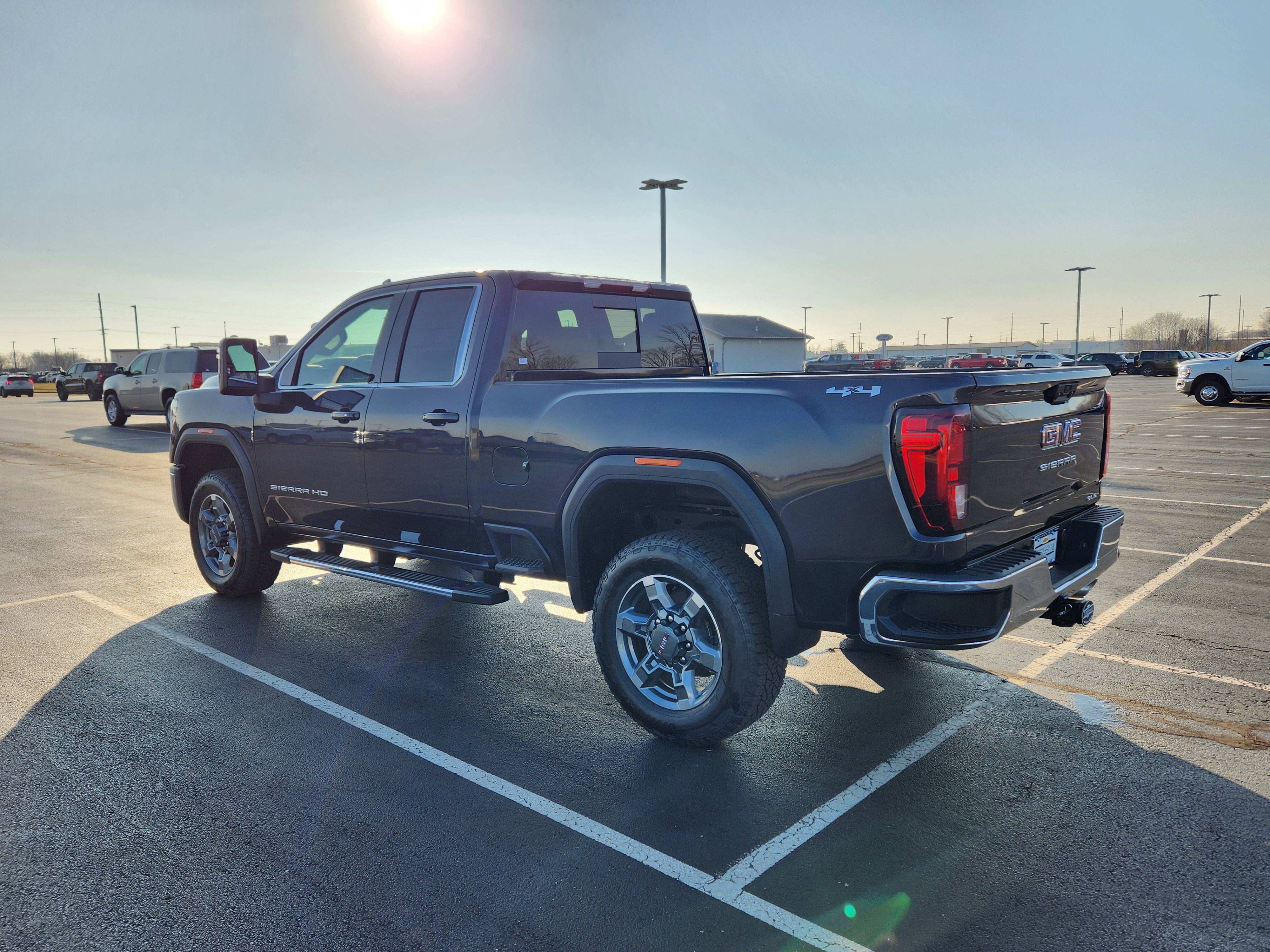 SLE HEATED PACKAGE includes (KA1) heated driver and passenger seats, (KI3) heated steering wheel, SLE CONVENIENCE PACKAGE includes (CJ2) dual climate control, (A2X) 10-way power driver seat including power lumbar, (N37) manual tilt/telescoping steering column, (T3U) LED fog lights and (U01) Roof Marker Lamps, REMOTE START PACKAGE includes (BTV) Remote Start, (UTJ) content theft alarm and (C49) rear-window defogger, PREFERRED PACKAGE includes (UET) In-Vehicle Trailering App., (PZ8) Hitch Guidance with Hitch View, (KSG) Adaptive Cruise Control and (UF2) cargo bed LED lighting; also includes (UG1) Universal Home Remote and (A48) rear sliding power window, GOOSENECK / 5TH WHEEL PREP PACKAGE -- HITCH PLATFORM TO ACCEPT GOOSENECK OR 5TH WHEEL HITCH. Includes hitch platform with tray to accept ball, stamped bed holes with removable caps installed and bed mounted 7-pin trailer harness (similar to UY2 harness). (Includes (CGN) spray-on bedliner. , TIRES, LT275/65R20 ALL-TERRAIN, BLACKWALL, REAR AXLE, 3.73 RATIO, MIRRORS, OUTSIDE POWER-ADJUSTABLE VERTICAL TRAILERING with heated and auto-dimming upper glass, lower convex mirrors, turn signal indicators, puddle lamps, (U12) perimeter lighting, auxiliary lighting, power folding/manual extending (extends 3.31" [84.25mm]), Black Includes Perimeter Lighting and (DD8) auto-dimming rearview mirror.), LPO, ASSIST STEPS, CHROMED TUBULAR, 6" RECTANGULAR (dealer-installed), LPO, ALL-WEATHER FLOOR LINER, 1ST AND 2ND ROWS (dealer-installed).
