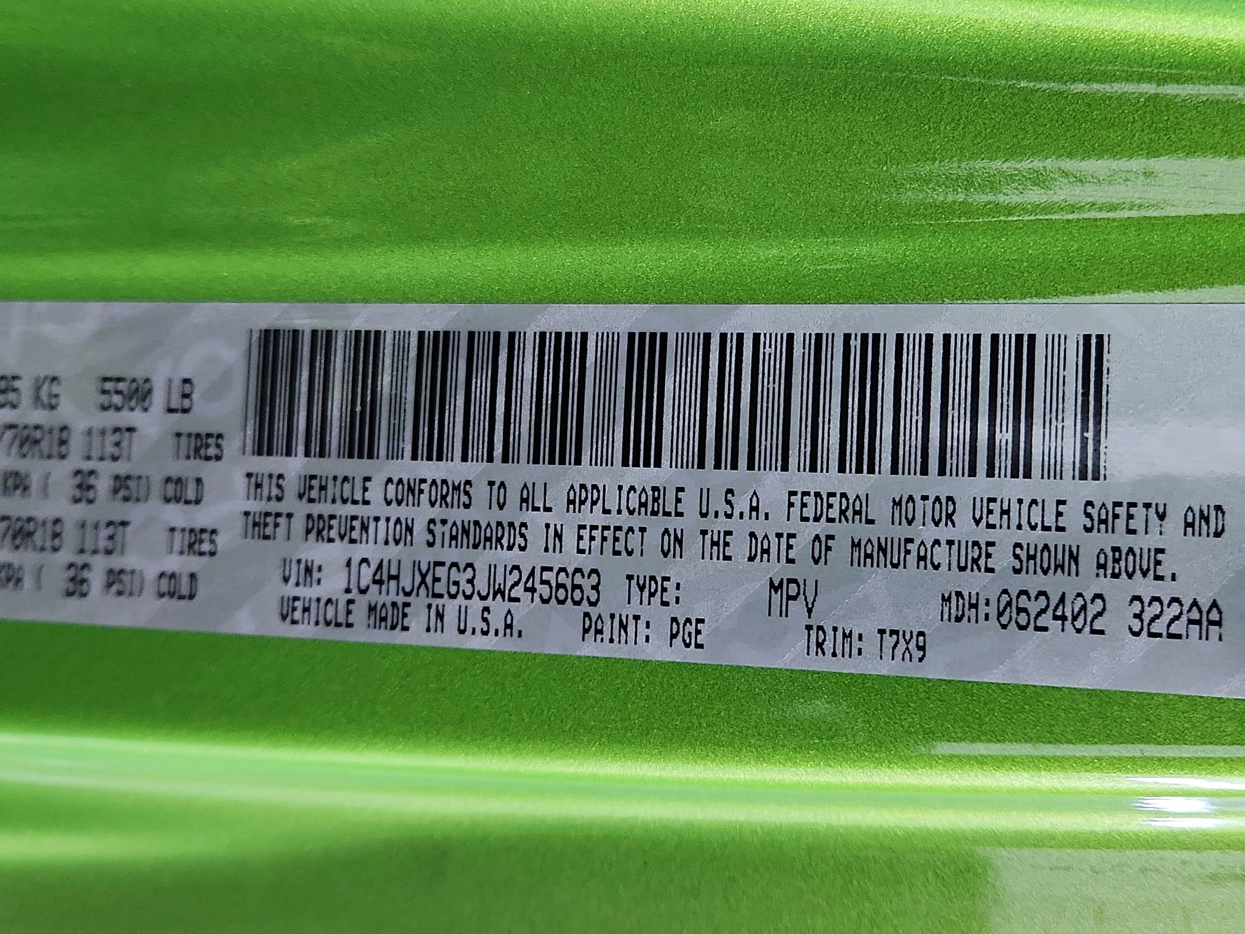 QUICK ORDER PACKAGE 24G -inc: Engine: 3.6L V6 24V VVT UPG I w/ESS, Transmission: 8-Speed Automatic (850RE) , SIRIUSXM SATELLITE RADIO, REMOTE START SYSTEM, RADIO: UCONNECT 4C NAV W/8.4" DISPLAY, MOPAR HARDTOP HEADLINER, MOPAR ALL-WEATHER FLOOR MATS, MOJITO! CLEARCOAT, LED LIGHTING GROUP -inc: Daytime Running Lamps LED Accents, Front LED Fog Lamps, LED Reflector Headlamps, LED Taillamps, ENGINE: 3.6L V6 24V VVT UPG I W/ESS (STD), ELECTRONIC INFOTAINMENT SYSTEM GROUP -inc: SiriusXM Traffic (subscription required) Plus, Alpine Premium Audio System, HD Radio, Radio: Uconnect 4C Nav w/8.4" Display, Rear View Auto Dim Mirror, GPS Navigation, SiriusXM Travel Link (subscription required), Roadside Assistance & 9-1-1 Call, 8.4" Touchscreen Display.