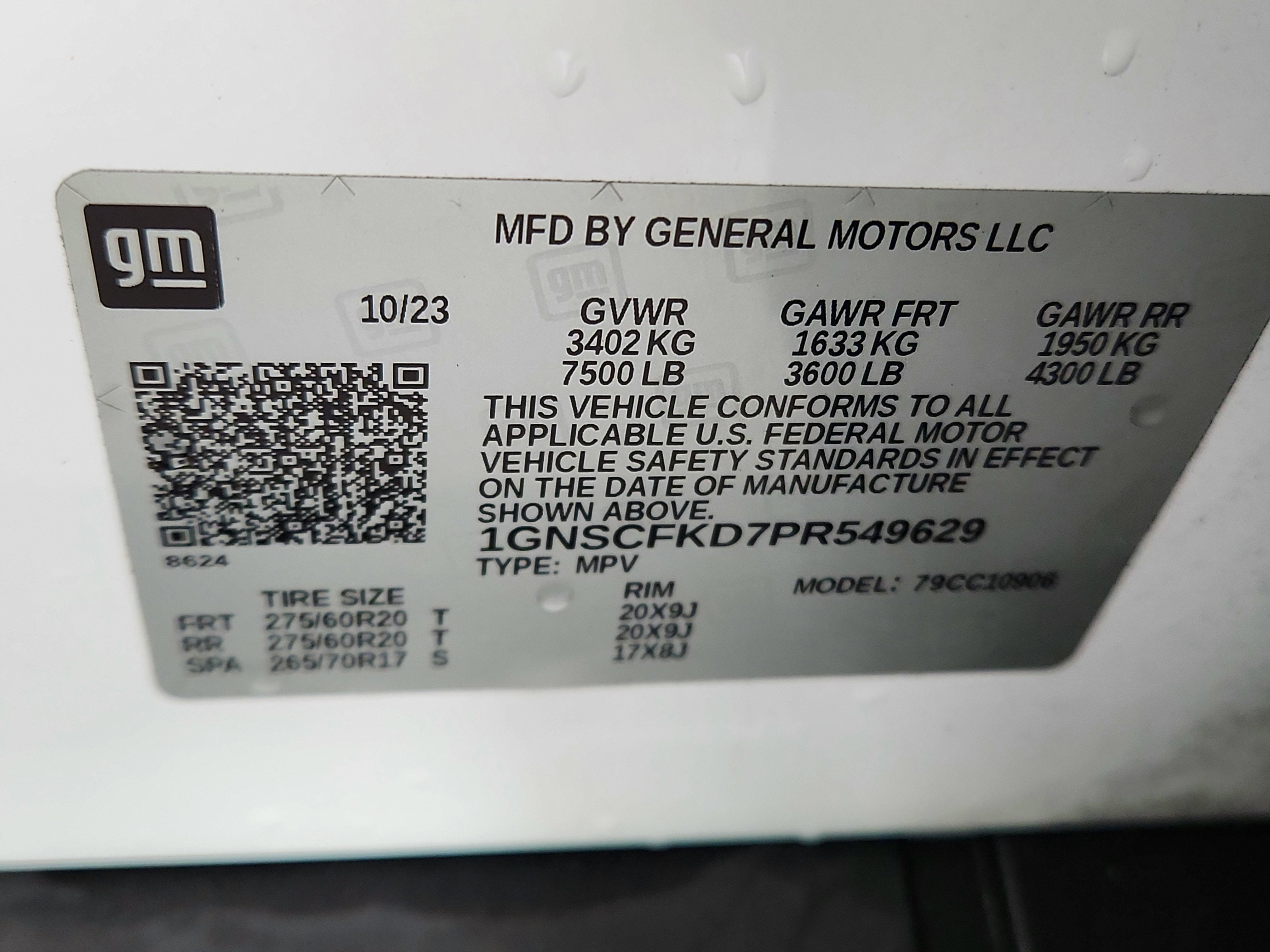 SUMMIT WHITE, SEATS, FRONT BUCKET (STD), REAR AXLE, 3.23 RATIO, PREMIER PREFERRED EQUIPMENT GROUP includes standard equipment, JET BLACK, PERFORATED LEATHER SEATING SURFACES 1ST AND 2ND ROW, GVWR, 7500 LBS. (3402 KG) (STD), ENGINE, 5.3L ECOTEC3 V8 with Dynamic Fuel Management, Direct Injection and Variable Valve Timing, includes aluminum block construction (355 hp [265 kW] @ 5600 rpm, 383 lb-ft of torque [518 Nm] @ 4100 rpm) (STD), DELETED 3 YEARS OF REMOTE ACCESS., AUDIO SYSTEM, CHEVROLET INFOTAINMENT 3 PREMIUM SYSTEM WITH GOOGLE BUILT-IN 10.2" diagonal HD color touchscreen, includes multi-touch display, AM/FM stereo, Bluetooth® streaming audio for music and most phones; featuring wireless Android Auto and Apple CarPlay capability for compatible phones, advanced voice recognition, in-vehicle apps, personalized profiles for infotainment and vehicle settings.) (STD), Wireless charging (Beginning October 31, 2022 through November 20, 2022, certain vehicles will be forced to include (00C) Not Equipped with Wireless Charging, which removes Wireless Charging. See dealer for details or the window label for the features on a specific vehicle.).