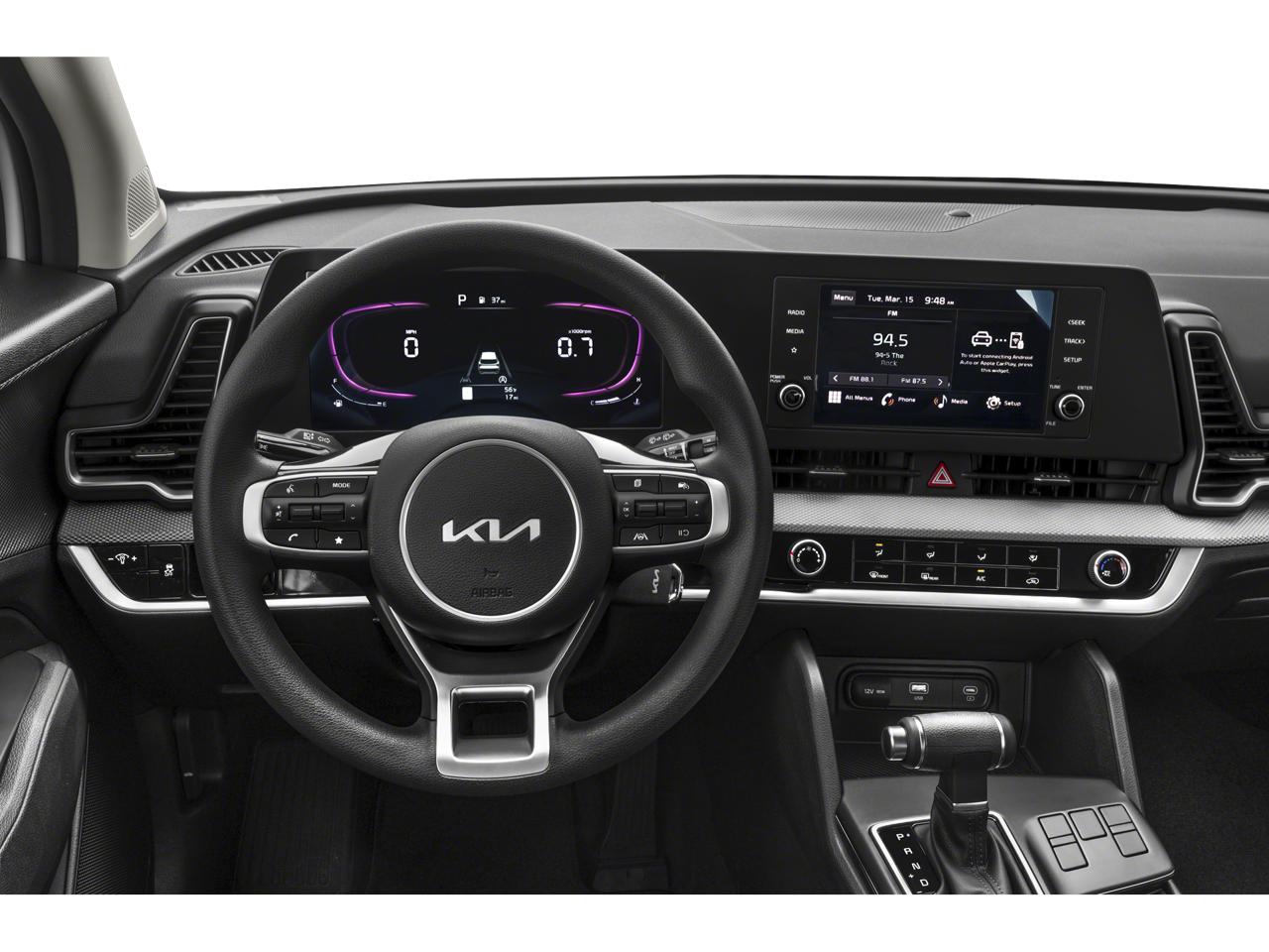 Scores 28 Highway MPG and 23 City MPG! This Kia Sportage boasts a Regular Unleaded I-4 2.5 L/152 engine powering this Automatic transmission. CARPETED FLOOR MATS, Wireless Phone Connectivity, Wheels: 17" Alloy.