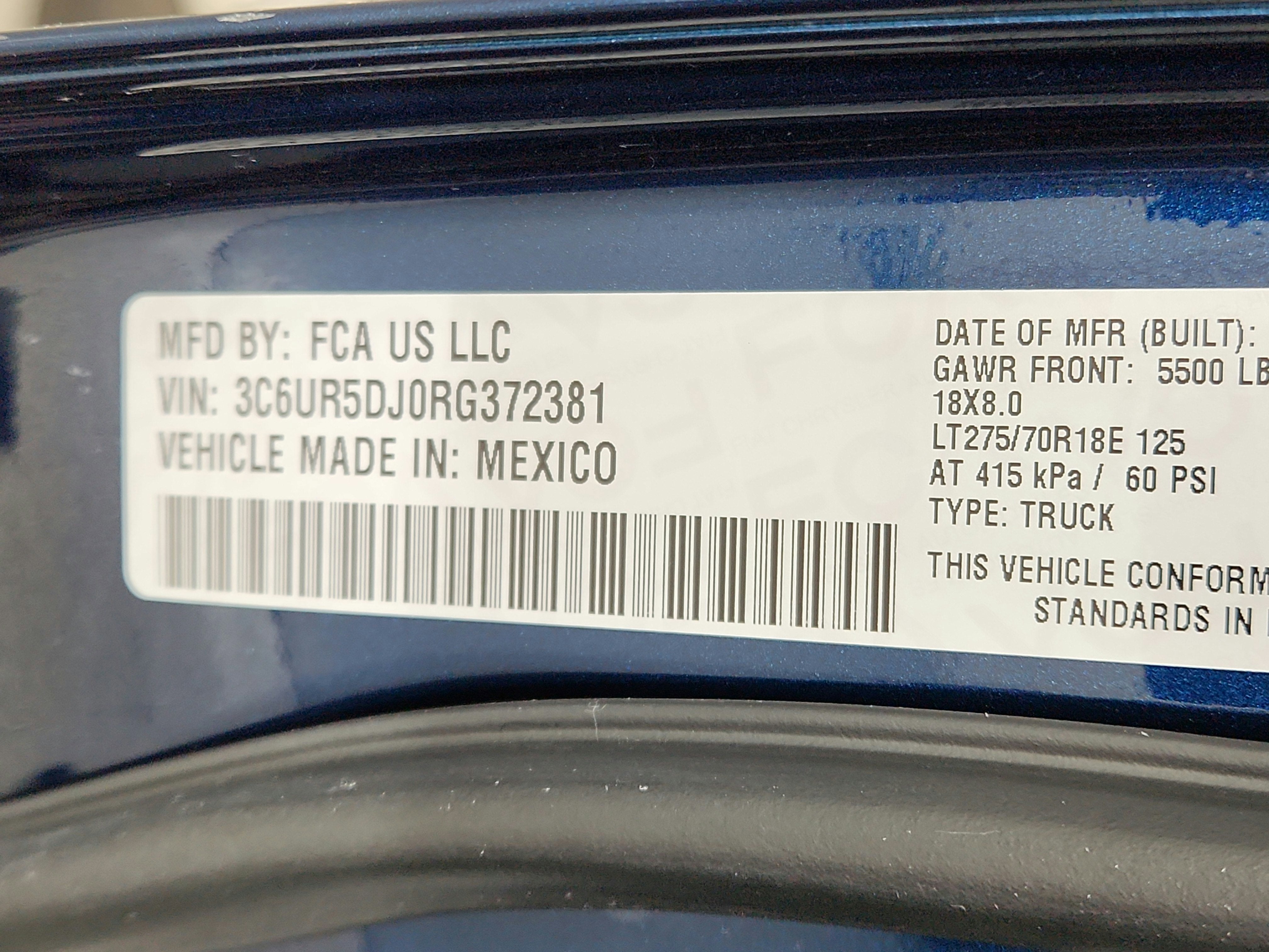 - Front Tire Size: LT275/70SR18